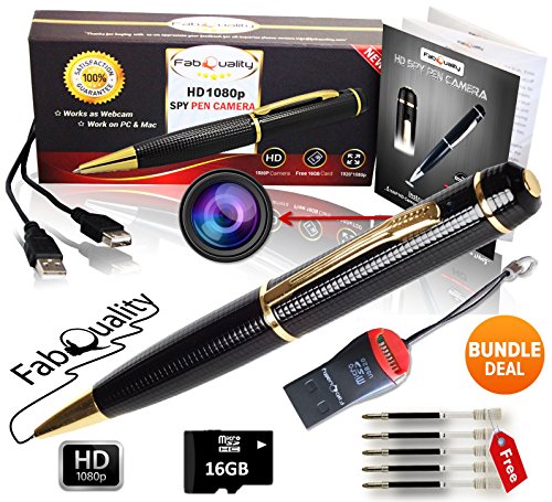 Feature: FabQuality Spy Pen 1080p LIMITED TIME Hidden Camera BUNDLE 16GB SD Card, Real HD Voice Video & Image + Upgraded Battery + 5 ink Fills Inc + USB SD Reader. Executive Multifunction DVR Perfect Gift