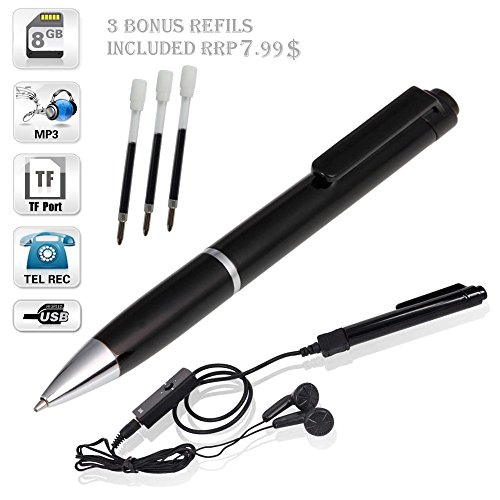 - ✔ Small & DiscretT as a spy voice recorder. Useful for covert audio surveillance. Same shape as a pen. No markings indicating it is a recording device. No flashing light when voice recording. Use as a hidden voice recorder in your pocket to secretly record live conversations. Use as a listening device to gather surveillance evidence about treatment of loved ones in care. Use to gather evidence of bullying.